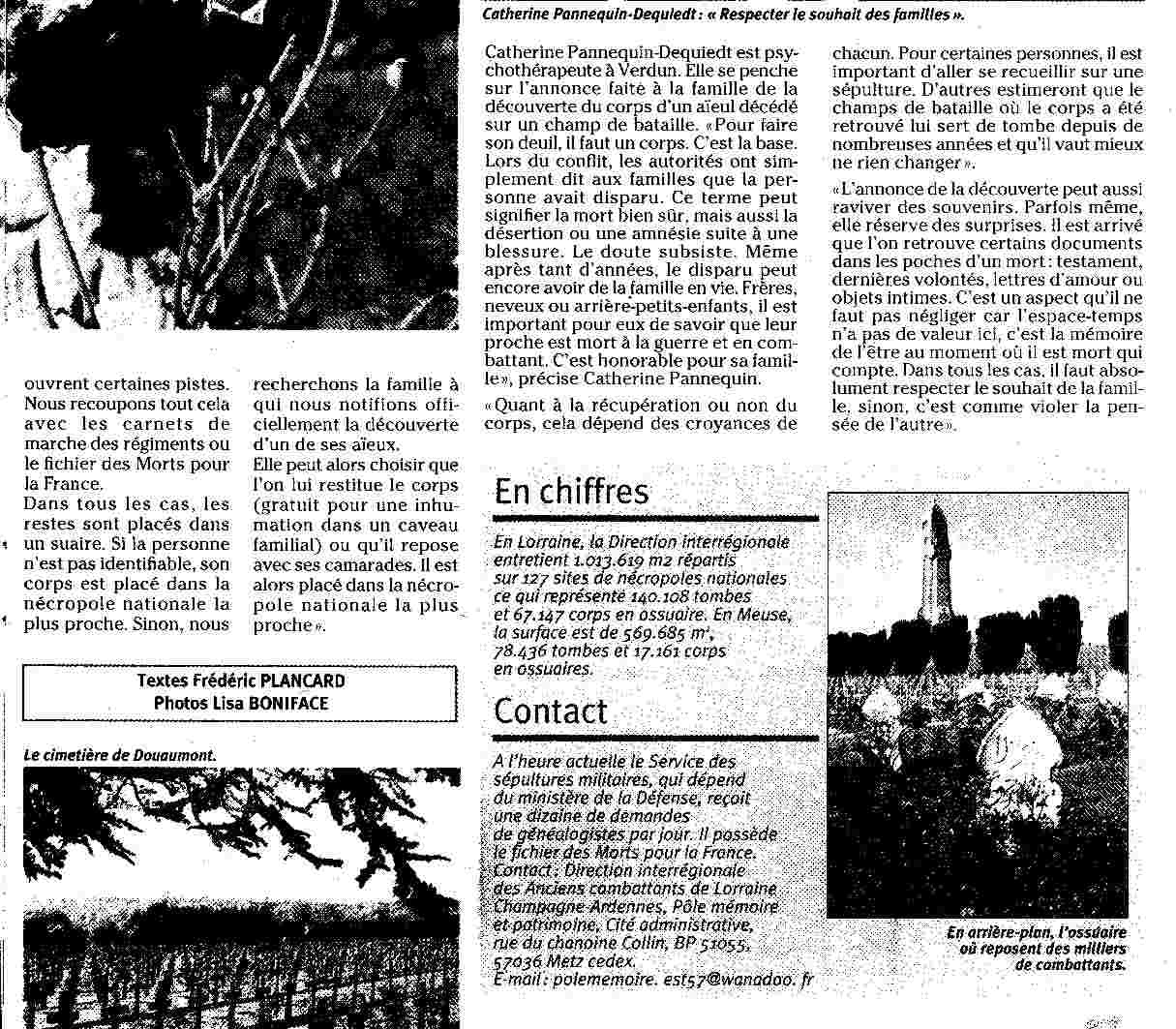 Cette lettre m'informait également de l'ouverture d'une enquête sur le lieu de sépulture de Joseph FOURIS par la direction régionale des Anciens combattants de Lorraine Champagne-Ardenne [pole mémoire et patrimoine, rue du Chanoine Collin BP 51055 57036 METZ Cedex].