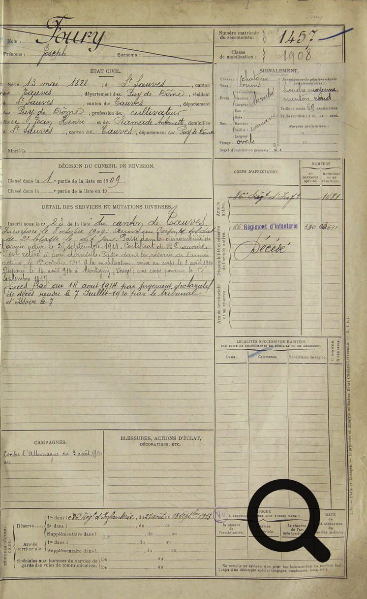 Mon grand-oncle Joseph FOURY (1888-1914),