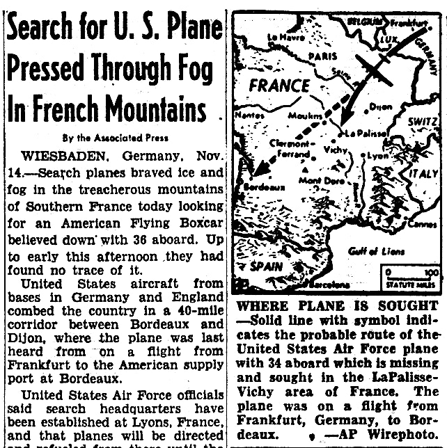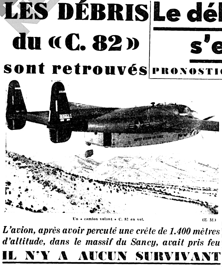 À l’occasion d’un vol régulier à destination de BORDEAUX-MÉRIGNAC (33), 32 passagers (29 aviateurs rejoignant leur nouvelle affectation au 126th Bombardment Wing afin d’établir un pool automobile, outre le caporal Edward G. DAVILA revenant de permission en Allemagne, et deux militaires du 2nd Air Postal Squadron) prenaient place à bord du C-82, composé d’un équipage avec quatre personnels : le pilote captain Raphael F. BAIRD, le co-pilote 2nd lieutenant Roy W. FINCK, le mécanicien navigant technical sergeant Francis F. FOX et l’opérateur-radio sergeant Donald E. GRIFFITH. Quinze des passagers et membres d’équipage étaient des vétérans de la seconde guerre mondiale.