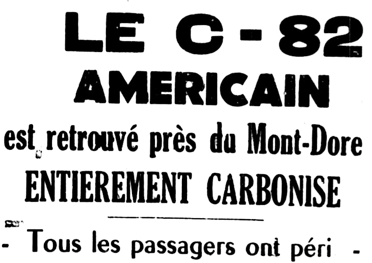 Le découpage de l’enchevêtrement de ferraille au chalumeau débutait au cours de la journée. 26 corps étaient transportés sur des civières au cours de l’après-midi et rassemblés sous une tente dressée au col de la Croix Saint-Robert. L’abbé BRIGAUD, curé du MONT-DORE, procédait à une bénédiction des corps mis en bière qui étaient ensuite descendus par camion et déposés dans une chapelle ardente dressée dans un chalet en bois de CHAMBON-SUR-LAC. Les murs avaient été recouverts de draps blancs par les femmes du village et un autel avait été mis en place, surmonté des drapeaux américains et français et celui des anciens combattants de la commune.