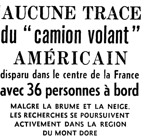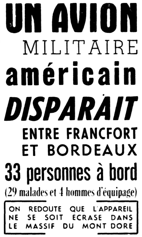 36 avions (plusieurs bombardiers B-29, 22 appareils C-82, 5 Douglas C-47, 2 hydravions Grumman SA-16 Albatross, etc.) venant notamment du 9th Air Rescue Squadron de WIESBADEN arrivaient sur le terrain d’aviation de BRON (69) pour participer aux recherches. Quatre hélicoptères armés d’infirmiers parachutistes étaient placés en alerte.