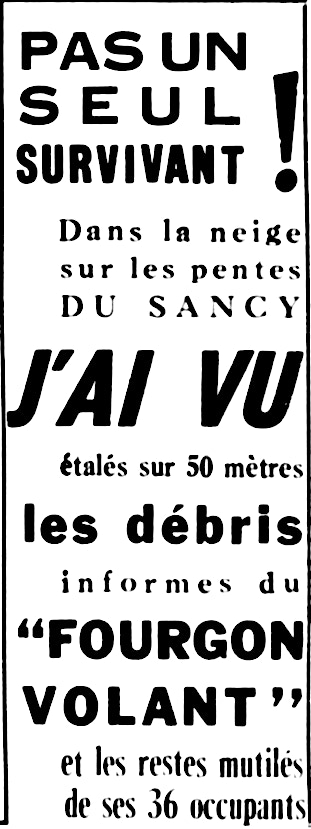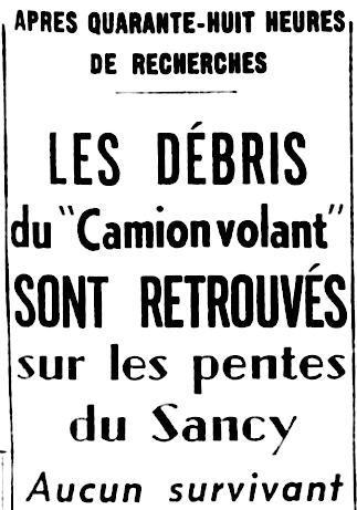 Les corps étaient affreusement mutilés ou brûlés et recouverts par une dizaine de centimètres de neige. L’heure exact de l’accident (12h35) était fixée au moyen du chronomètre de bord et des montres arrêtées des victimes. Il apparaissait que l’avion avait dévié de 8° à gauche de son plan de vol depuis la région de DIJON pendant deux heures, soit de 50 miles (80 km) au sud.
