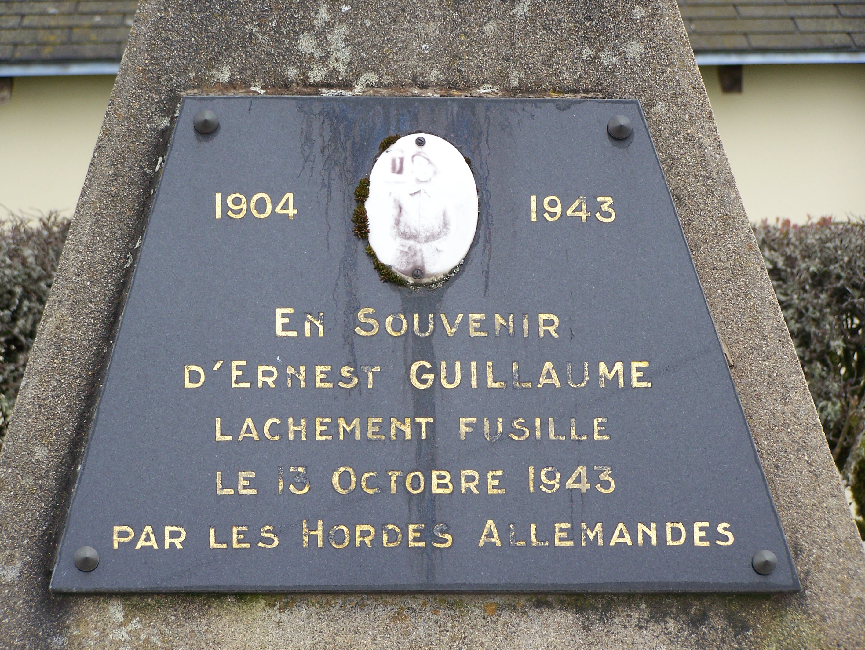 L’après-midi du 14 octobre 1943, Ernest GUILLAUME est inhumé en présence d’une assistance fort nombreuse et indignée par la conduite de l’occupant à Singles. «Pierre» et six de ses maquisards présentent les armes au passage du cercueil à l’entrée de l’église. L’un d’entre eux dépose sur la tombe du martyr une croix de Lorraine en bois.
